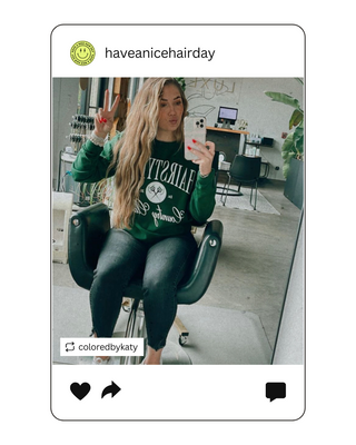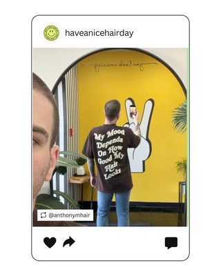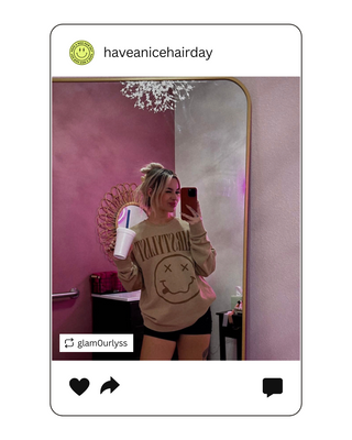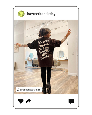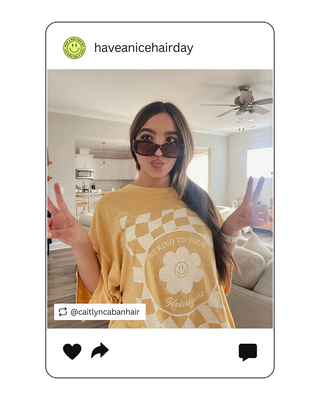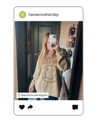 Have A Nice Hair Day front & back print tshirt. Front has a happy face and back says Have A Nice Hair Day. Fit is oversized. 100% super soft garment dyed cotton tshirt in periwinkle. Size up for that oversized fit!